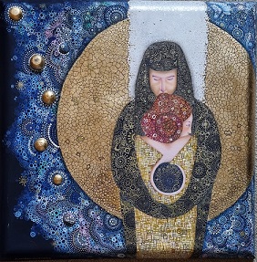 Luna rossa, acrilico e foglia oro, 44x44 di Daniela Carcano |
